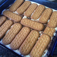 maizena, pêssegos em calda picados e o creme... ir intercalando com bolacha,