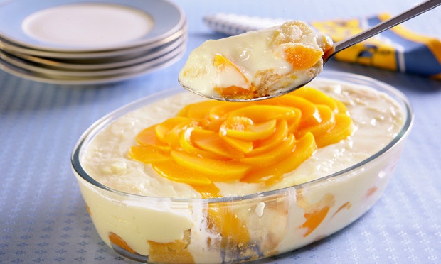 com pêssego em calda (não colocar a calda para não ficar muito doce).